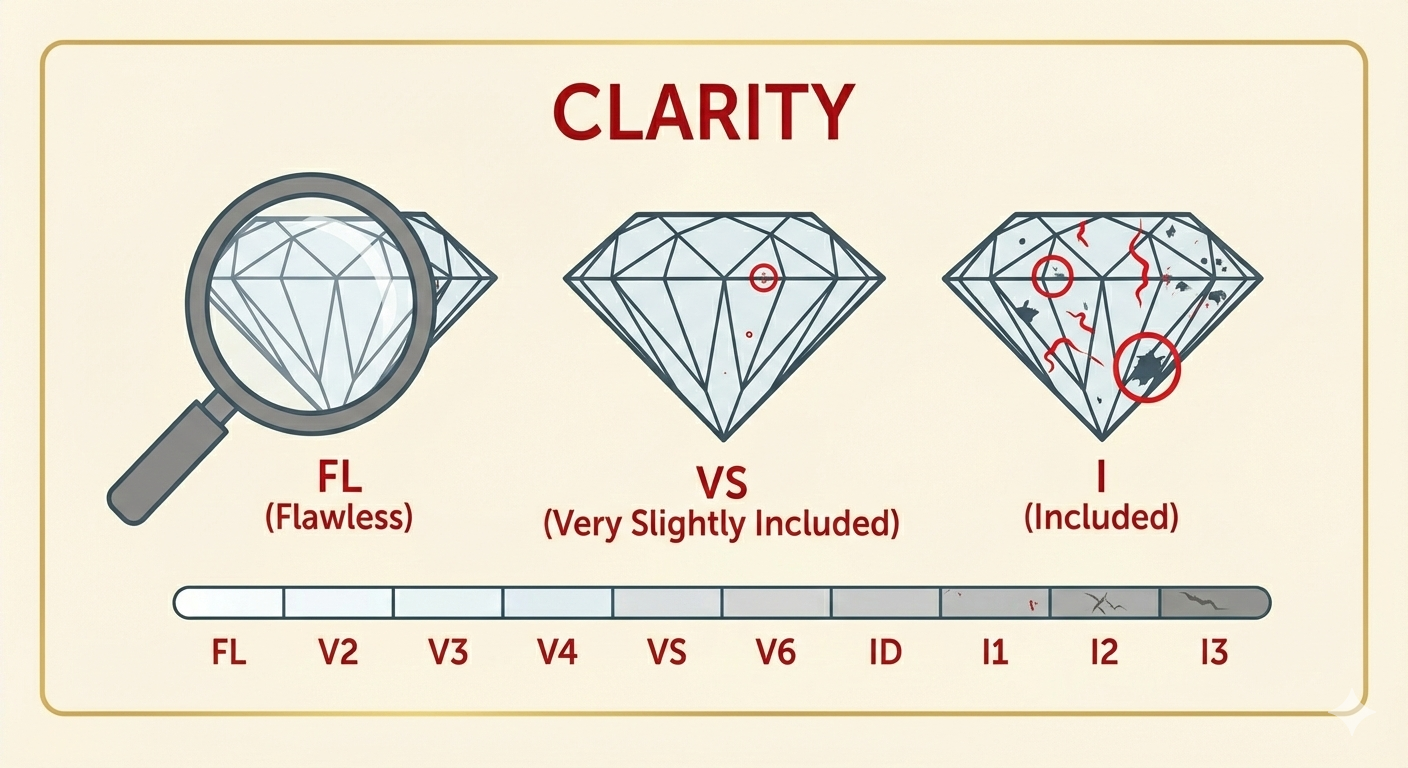 - VVS/VS: Inclusions invisible to eye.