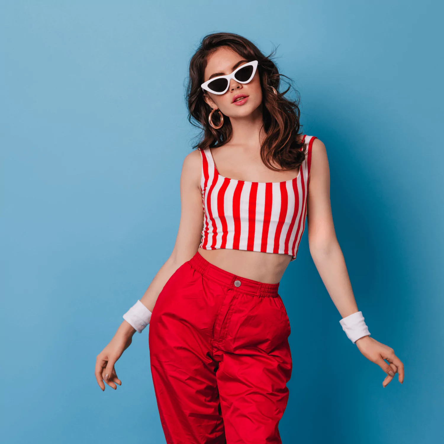 Women Red & White Striped Crepe Top
